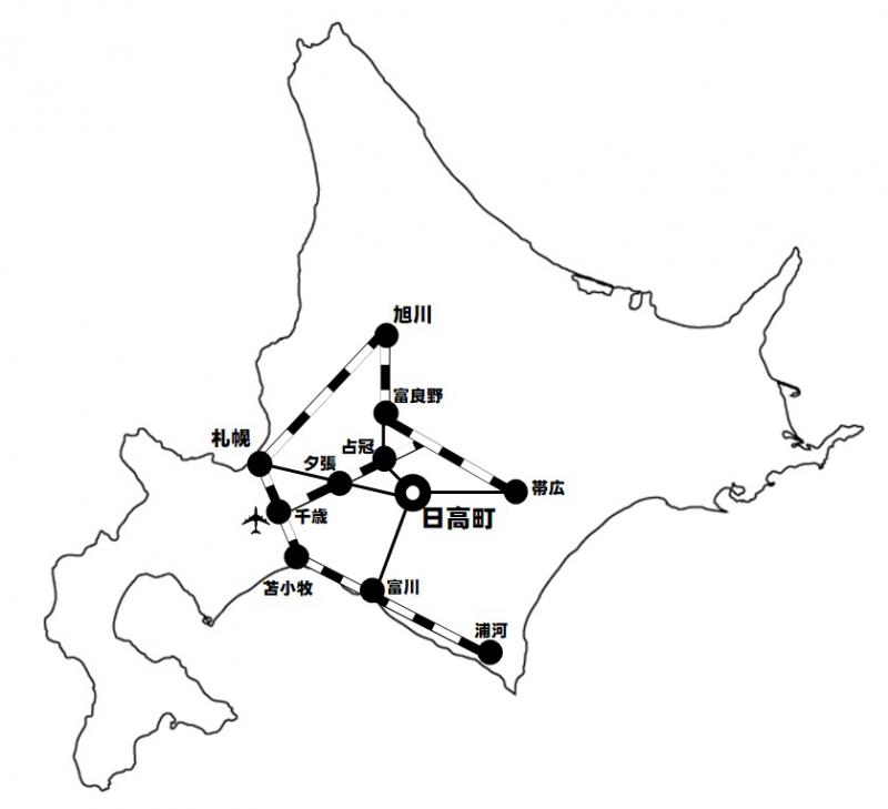 ☆占冠駅~日高町(町営バス利用 約25分)