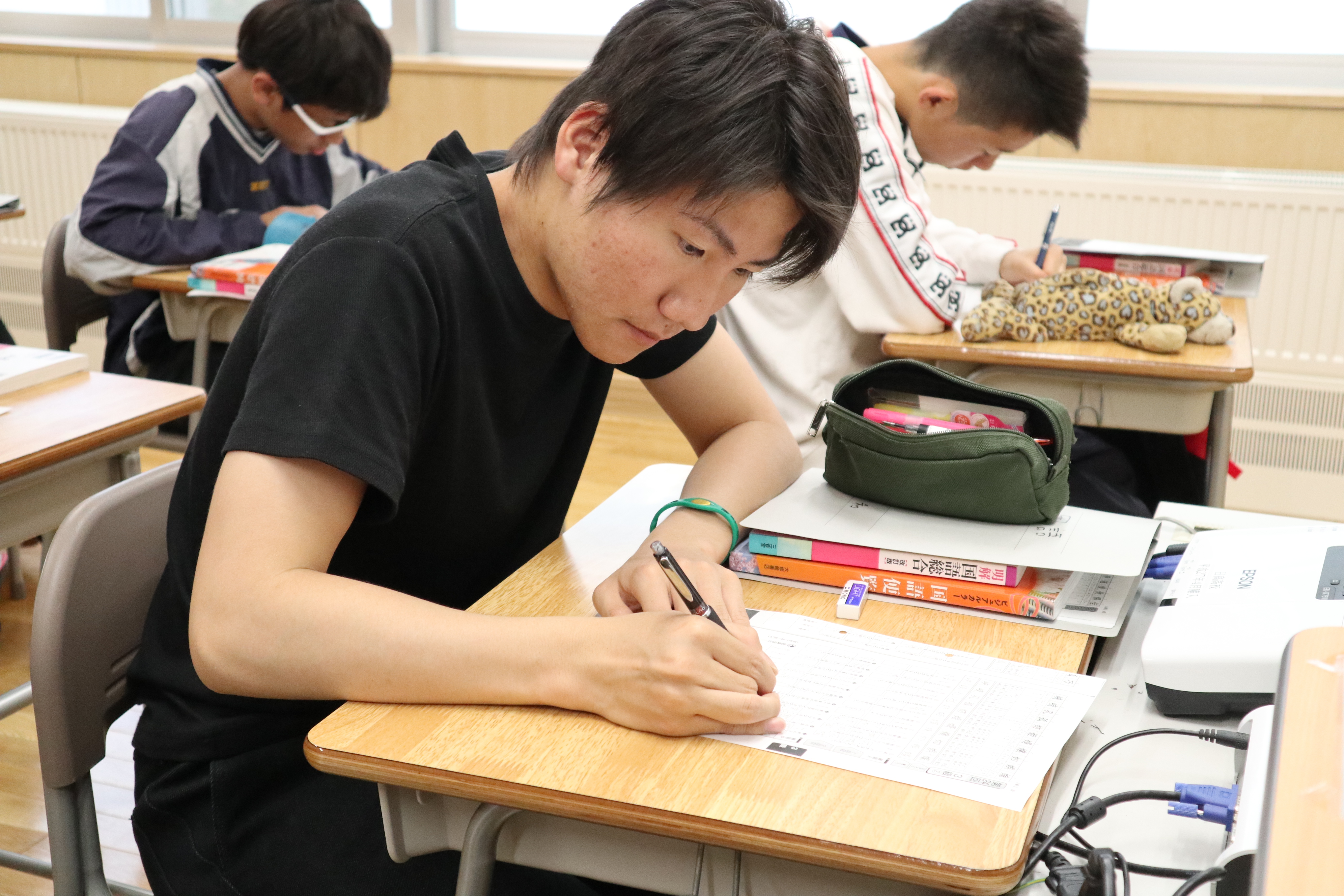 生徒は夕食後に登校し、各教科の授業を4時間受けます。日中活動した後なので、眠たくなることも…