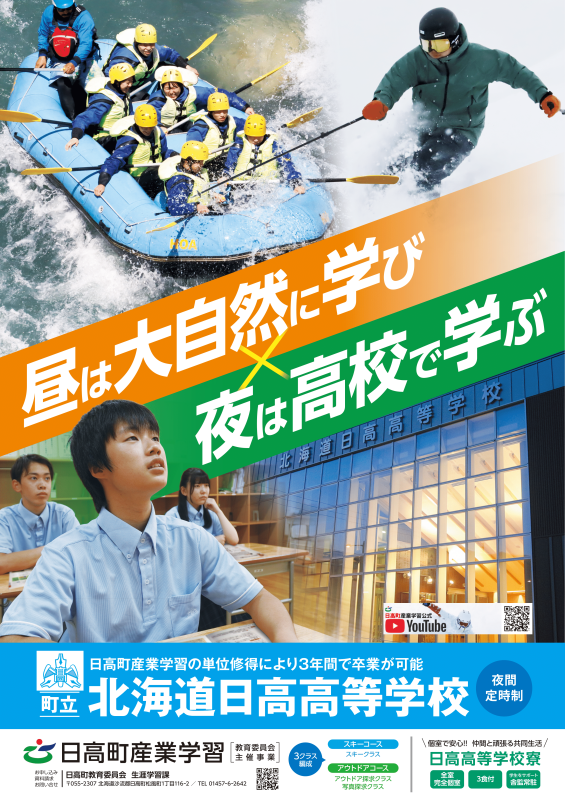 昼間に町教委が主催する『日高町産業学習』を受講することで、3年間で卒業することができるユニークな高等学校です。
